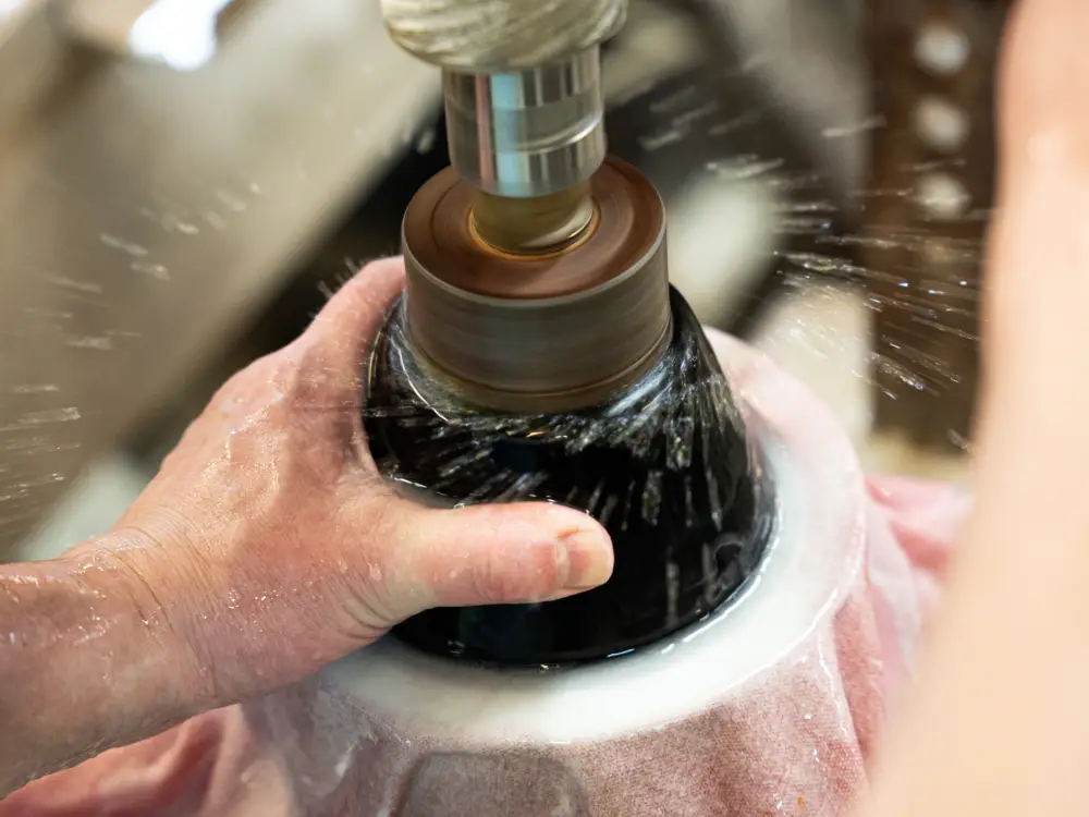 Wooden moulds, by contrast, are quicker to produce but have a shorter lifespan, typically yielding 30 to 50 pieces of glass each. Their lifespan depends on the complexity of the shape.