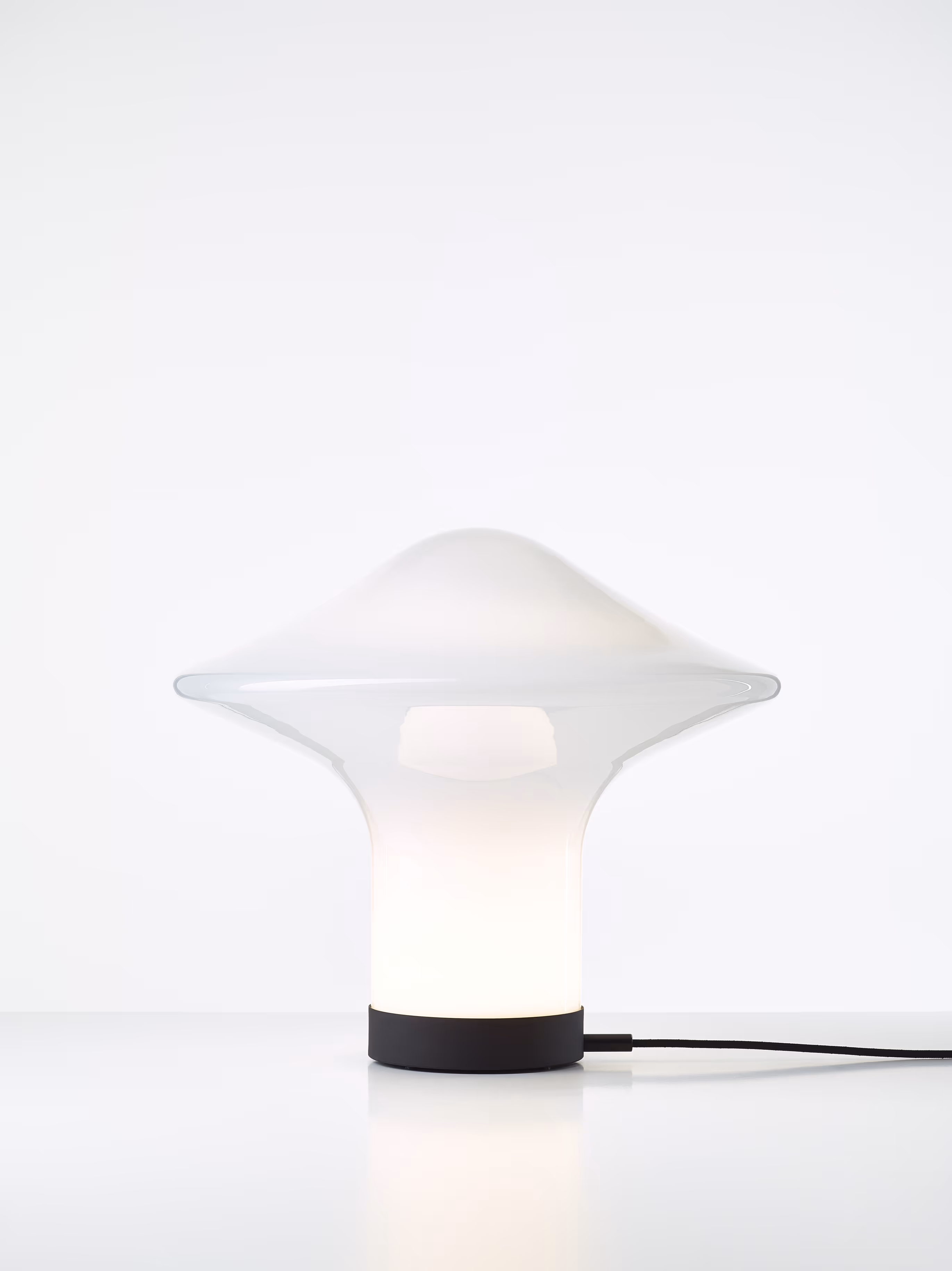 Opaline is a gently translucent glass with an opalescent tone that allows light to pass through naturally. The intensity of its milky appearance varies depending on the thickness of the individual glass layers. Thanks to the hand-blown process, each piece is unique.